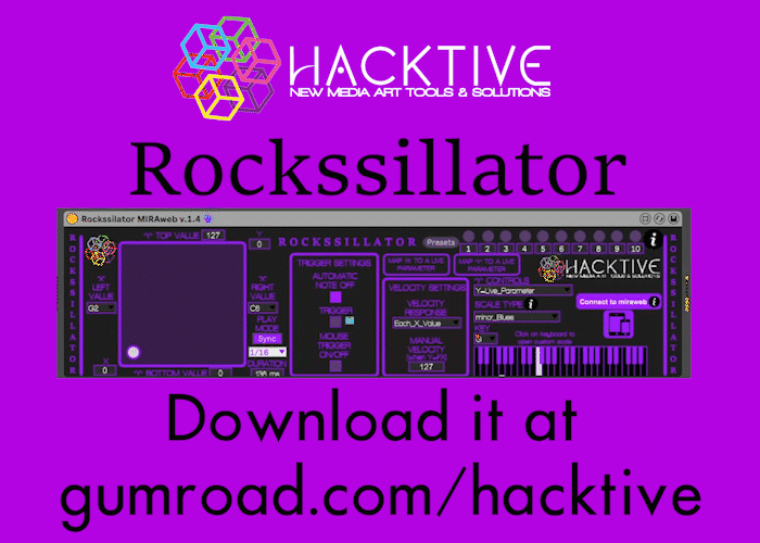 The Rockssillator its a Max for Live MIDI Effect device for Ableton Live that sends MIDI notes from a XY pad, along with some additional features. Inspired by the Korg Kaossillator and the Jordan Ruddes' Morphwiz app.